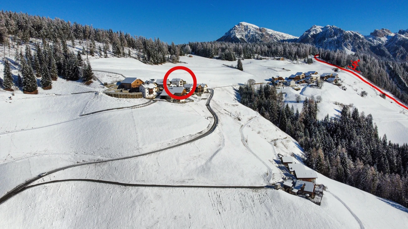 Una graziosa meta, punto di partenza per escursioni e passeggiate, situato tra prati e boschi, in posizione tranquilla e soleggiata, dista soli 5 minuti dagli impianti di sci ed è situato tra il parco naturale "Fanes-Sennes-Braies" e "Puez-Odle".