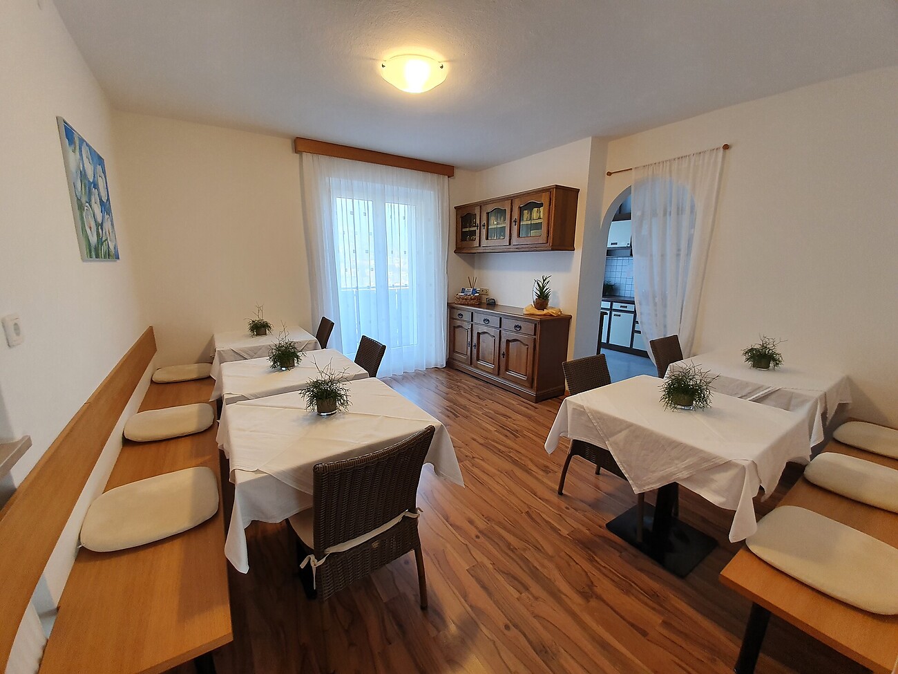 Pensione curata e confortevole a conduzione familiare. Stanze con doccia e WC e balcone. Colazione abbondante, prato per prendere il sole, cucinino per prepararsi una bevanda calda. Godrete di una bella terrazza affacciata su un suggestivo panorama. A Vostra disposizione avrete delle biciclette per indimenticabili passeggiate.