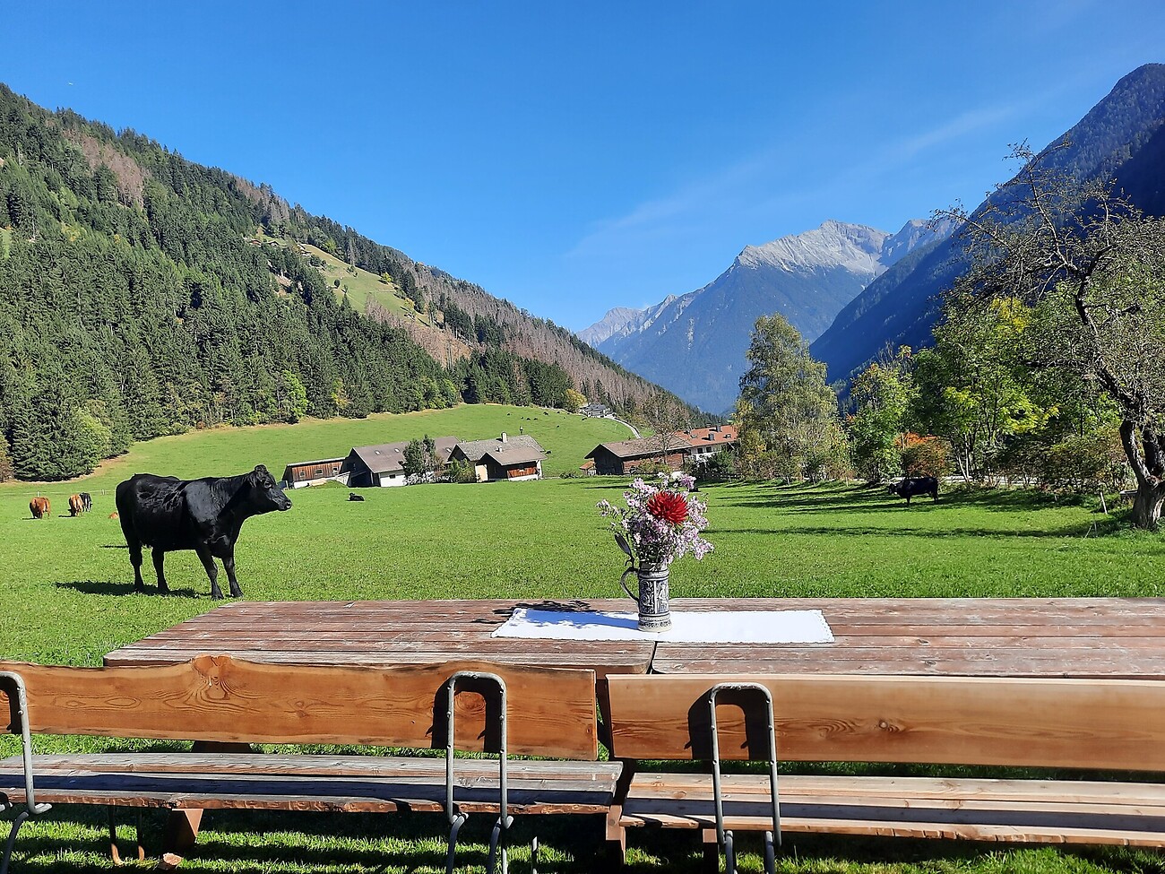 La grande stube tirolese offre spazio sufficiente per trascorrere serate piacevoli insieme e godersi la pace e la tranquillità.