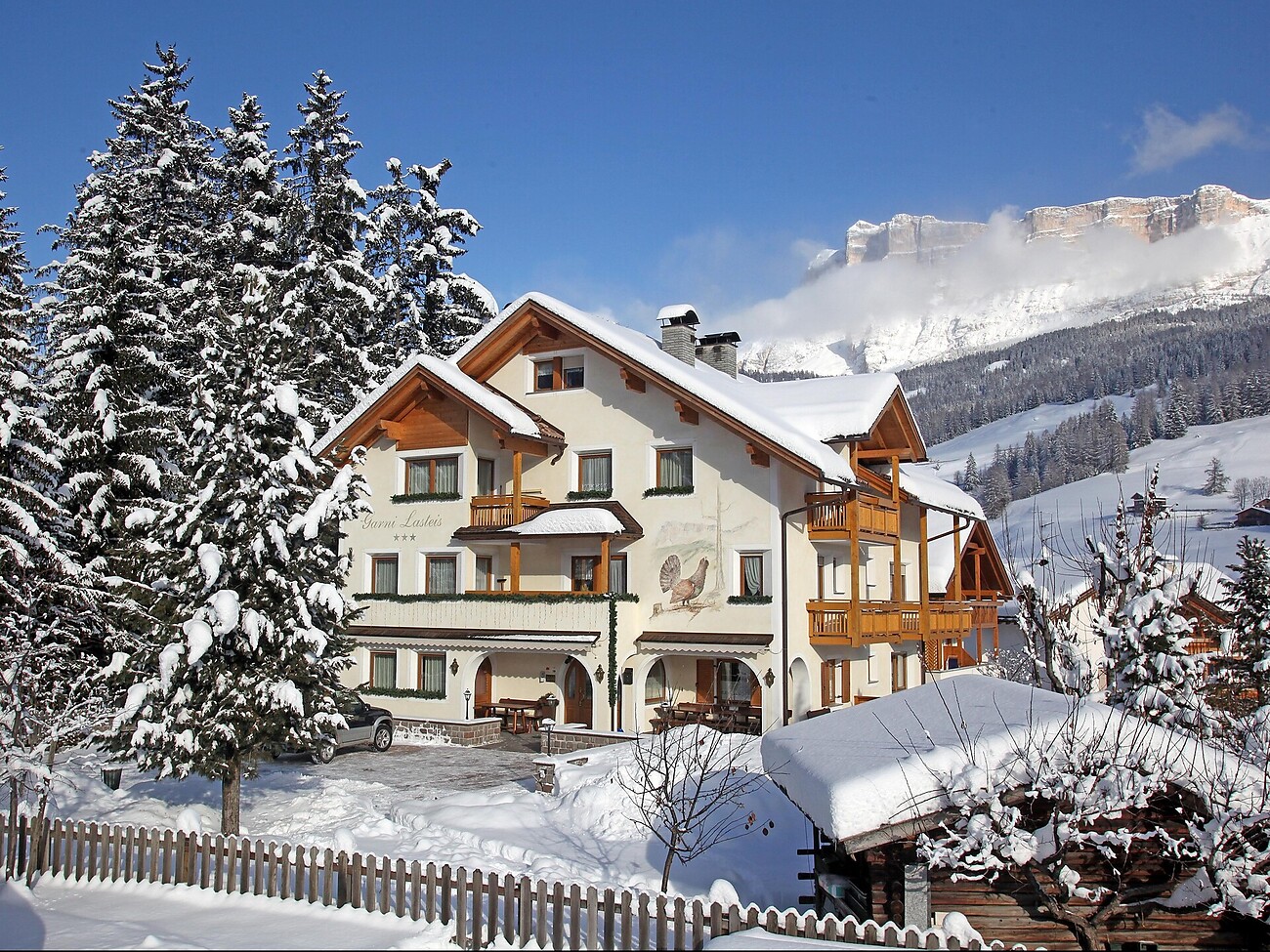 Un ampio giardino curato invita al relax in uno scenario di boschi verdi e maestose montagne, le Dolomiti. La posizione del “Garni Lasteis” è estremamente vantaggiosa sia d’inverno che d’estate.