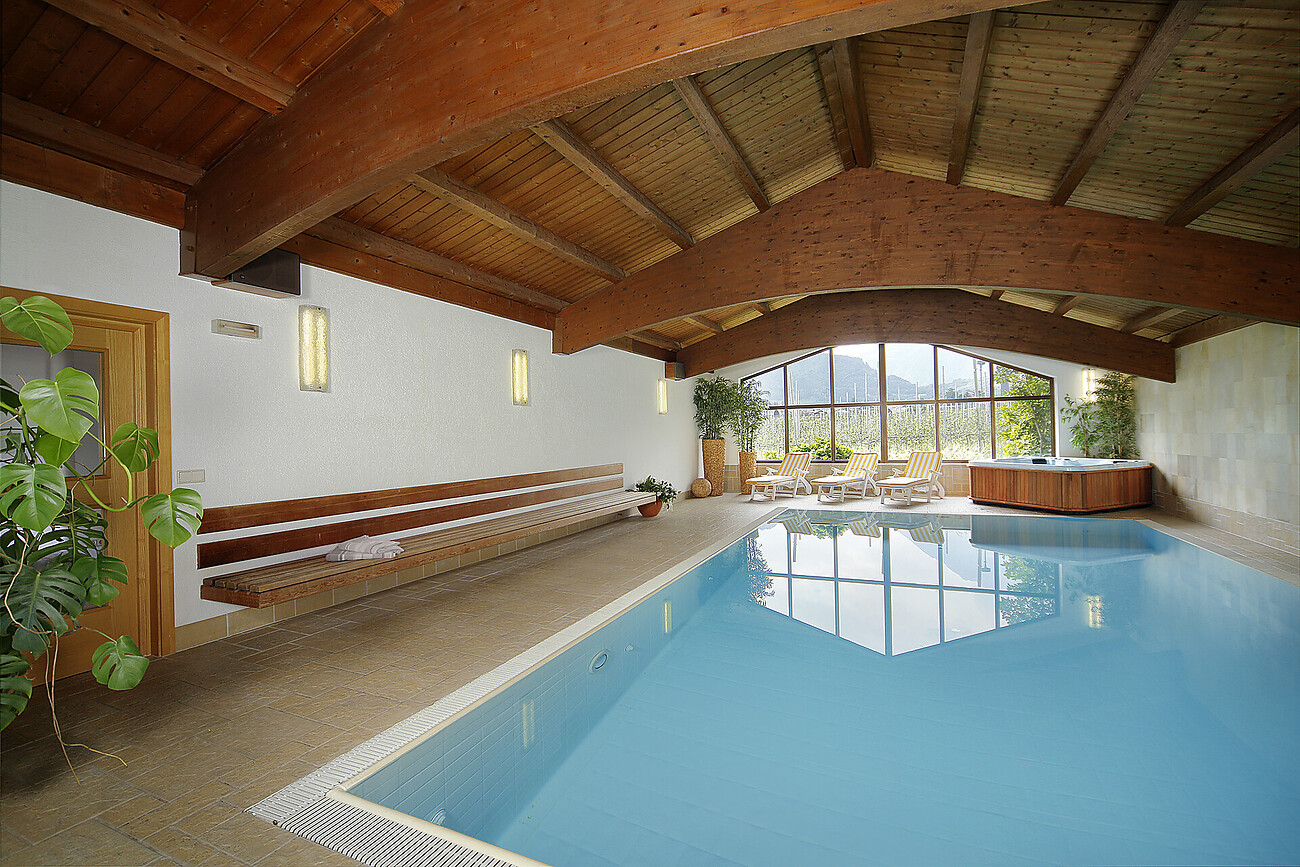 Pensione accogliente a conduzione familiare con prima colazione a buffet situata tra i frutteti. Lontano da stress e traffico e nello stesso momento solo pochi minuti dal centro Vi offre tranquillitá e riposo. LasciateVi viziare da noi. Gustate delle vacanze speciali nel nostro paradiso. Stanze con cassaforti, doccia, WC, TV e balcone. Piscina coperta e scoperta, idromassaggio, terrazzo e un bel prato per prendere il sole, parcheggio, palestra, sauna, bagno turco, solarium e biciclette sono a Vostra disposizione. I nostri ospiti più piccoli trovano un' altalena, una sabbiera e tantissimi giochi. In estate settimanalmente avranno luogo delle serate pizza in giardino. La nostra Pensione é anche punto ideale di partenza per escursioni e passeggiate. Tre volte a settimana un ora Nordic Walking!