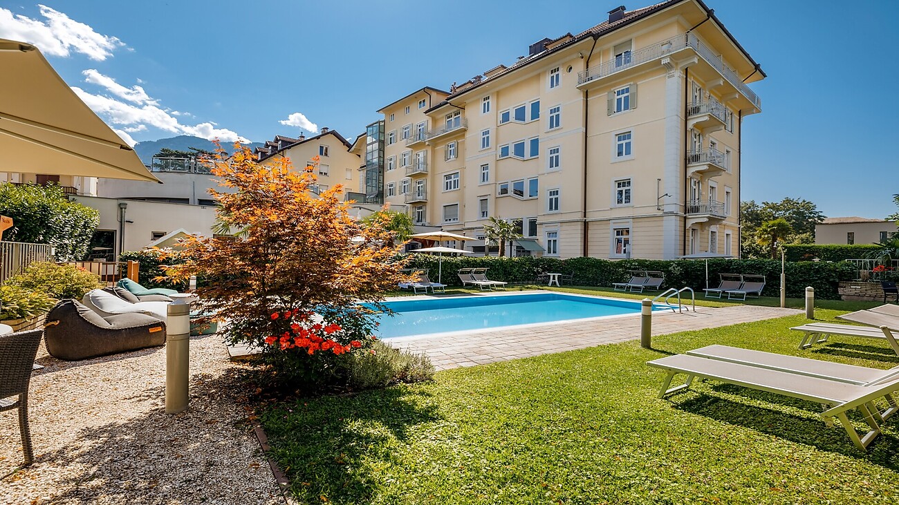 Merano, città di cura con fama internazionale, con il suo Castel Trauttmansdorff, residenza dell'imperatrice Sissi, con le sue note Terme, il centro storico ed il suo clima mediterraneo invita a trascorrere una vacanza indimenticabile. L'albergo è aperto tutto l'anno.