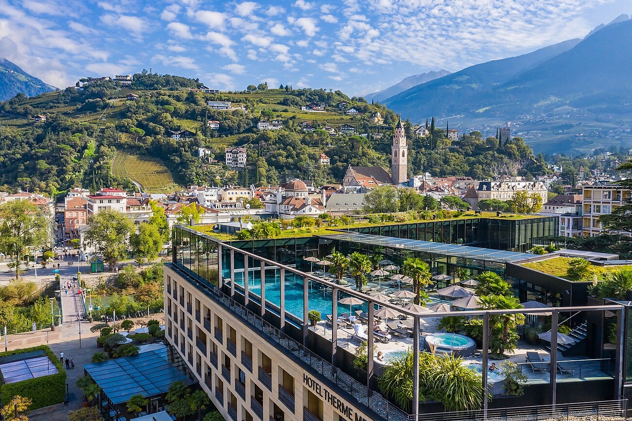 L'Hotel Terme Merano accoglie i propri ospiti nel cuore della città di cura. Le vaste sale convegni nel hotel nonché nel prospiciente Kurhaus costituiscono la cornice ideale per le vaste manifestazioni. La Sky Spa e la Garden Spa con collegamento diretto con le Terme Merano garantisce relax allo stato puro.