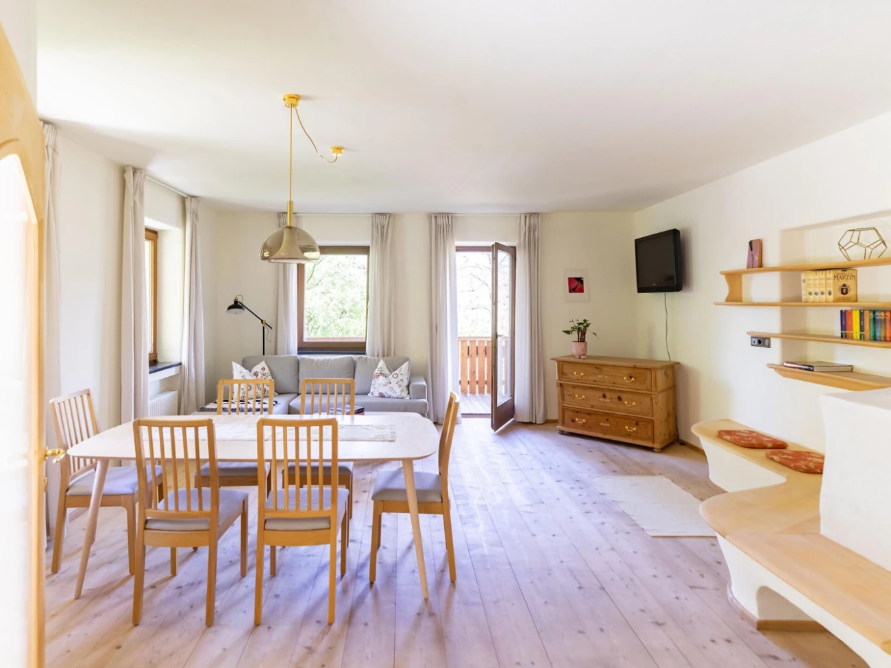 L'appartamento ha un ingresso privato con parcheggio, un ampio balcone e una terrazza con giardino. Puoi aspettarti camere progettate con cura, inondate di luce e una fantastica vista sulle vette circostanti e sulla città culturale di Bressanone. L'appartamento si trova al 1 ° piano con accesso dallo stesso livello del parcheggio. Può ospitare 5 persone in una camera matrimoniale e una camera con un letto singolo e un letto a castello. Opzionalmente, una sesta persona può dormire sul divano nel soggiorno. La grande sala centrale, piena di luce, offre abbastanza spazio per tutti e vi invita a rilassarvi. Nella cucina completamente attrezzata, spaziosa può essere cucinata insieme. Con il bel tempo, la terrazza accessibile dalla cucina vi invita a fare colazione all'aperto e sul balcone potrete trascorrere una giornata al sole della sera. Il bagno colpisce per il piacevole colore delle piastrelle effetto pietra, ha una vasca con attacco per doccia, lavatrice, asciugacapelli, asciugamani e sapone per le mani. Direttamente dietro l'ingresso si trova una piccola sala d'ingresso con guardaroba. Per riporre valigie, attrezzatura per l'escursionismo o lo sci c'è abbastanza spazio nel ripostiglio. L'intero appartamento è arredato secondo un concetto di design olistico, dotato di pavimenti in legno massello, mobili in legno e attrezzature di alta qualità e attende con impazienza i visitatori che lo apprezzano.