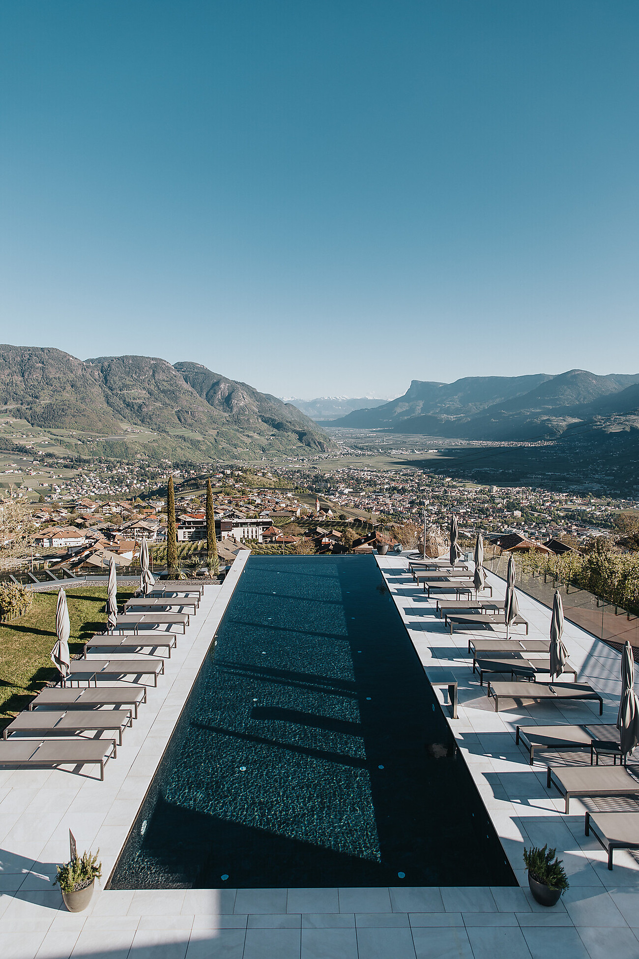 La Villa La Vista Panoramic Hideaway a Tirolo è un rifugio speciale con camere e suite, moderne e di alta qualità. Una villa in una posizione da sogno con una vista panoramica unica nel suo genere. L‘highlight della villa è la piscina a sfioro di acqua salata riscaldata di 18 metri di lunghezza.