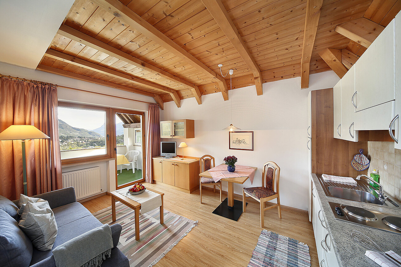 Ambiente familiare e confortevole in mezzo alla natura. Tutti appartamenti arredati con camera da letto, salotto con angolo cucina, cassaforte, TV, Wifi gratuito, balcone con vista panoramica, piscina con un grande giardino. Servizio pane fresco. Nostro residence è posizionato tra il paese Tirolo e città di Merano.