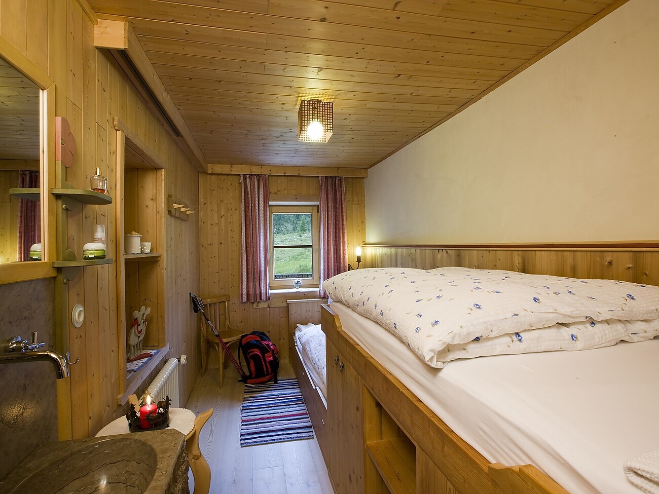 È provvisto di elettricità tramite propria centrale elettrica, riscaldamento centralizzato, docce, e acqua calda e fredda.