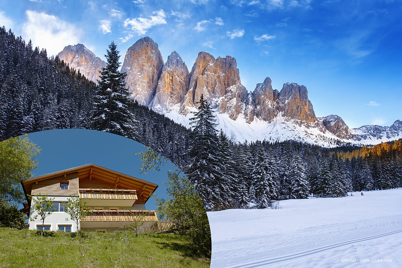 VALENTINO36 – questa è la nostra casa per le vacanze nelle Dolomiti di Funes nella regione del patrimonio mondiale dell’UNESCO del Puez-Odle. Trascorri le tue vacanze in uno dei nostri appartamenti privati in una fantastica posizione appartata in mezzo a prati e boschi e goditi la pace e l’isolamento in una delle valli più incontaminate e più belle delle Alpi.