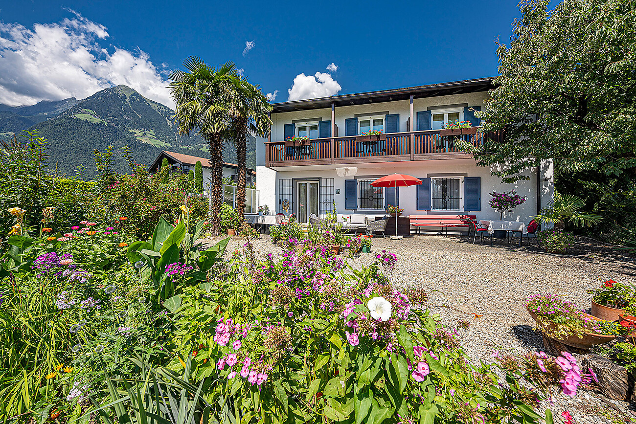 La nostra casa, lontana dalla strada, in posizione tranquilla, in mezzo al verde, da cui si gode una spettacolare vista sulla conca di Merano, confina con l’ampio parco naturale “Burglehen”. Nel nostro rigoglioso giardino e sulla terrazza della casa potrete rilassarvi e godere della natura circostante.