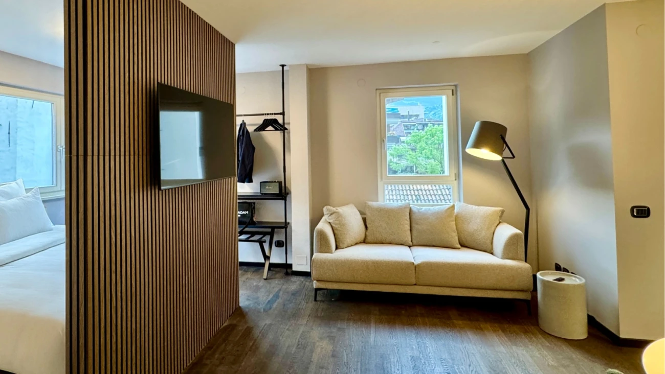 La suite boutique è uno spazio aperto e luminoso, progettato con una struttura chiara e materiali di alta qualità. Le ampie finestre garantiscono luce naturale per tutto il giorno – anche nel bagno, arredato con stile e dotato di ampia doccia, bidet e finestra. A disposizione degli ospiti: docciaschiuma, shampoo, lozione corpo, sapone per le mani, asciugamani freschi e biancheria da letto.