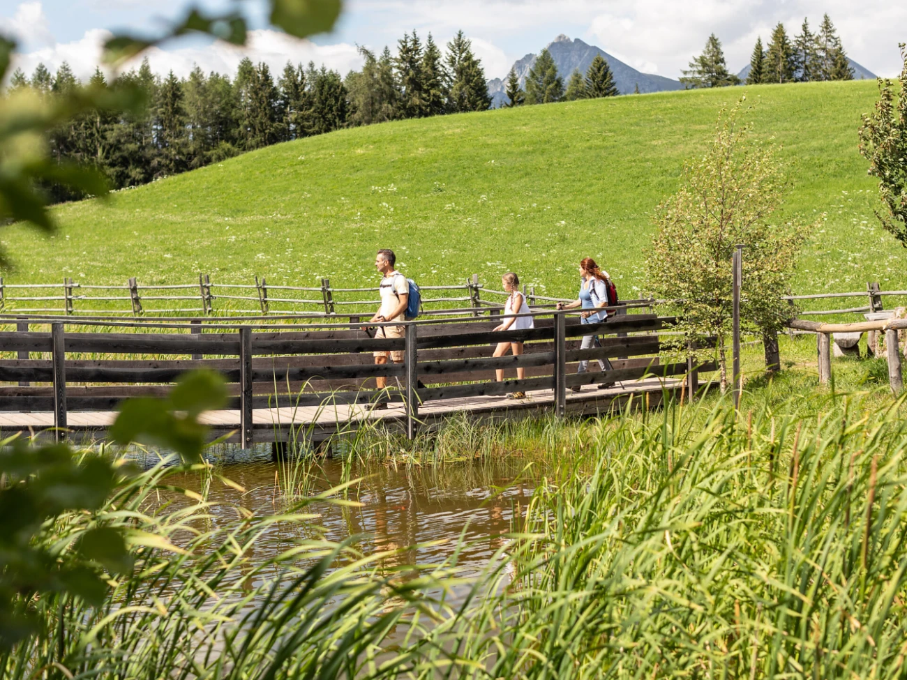 L’incantevole stagno Bruggen sito lungo il sentiero n. 16 sotto la malga Leadner offre agli stanchi escursionisti l’occasione per un rinfrescante pediluvio e una pace assoluta.