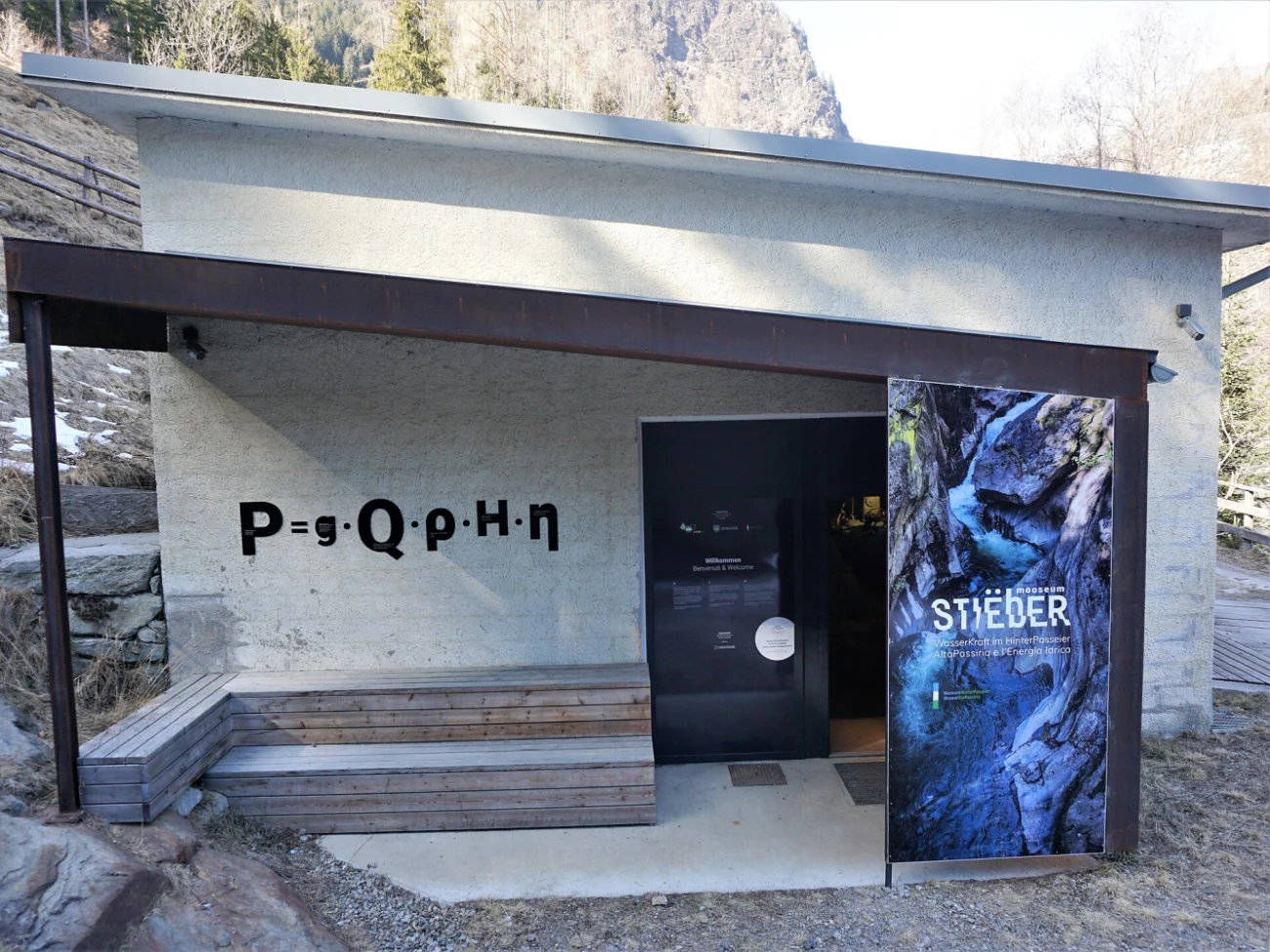 Struttura museale nella vecchia centrale idroelettrica ai piedi della cascata Stieber. Temi: energia idraulica, storia sulla tecnica e corrente nell’Alta Val Passiria.