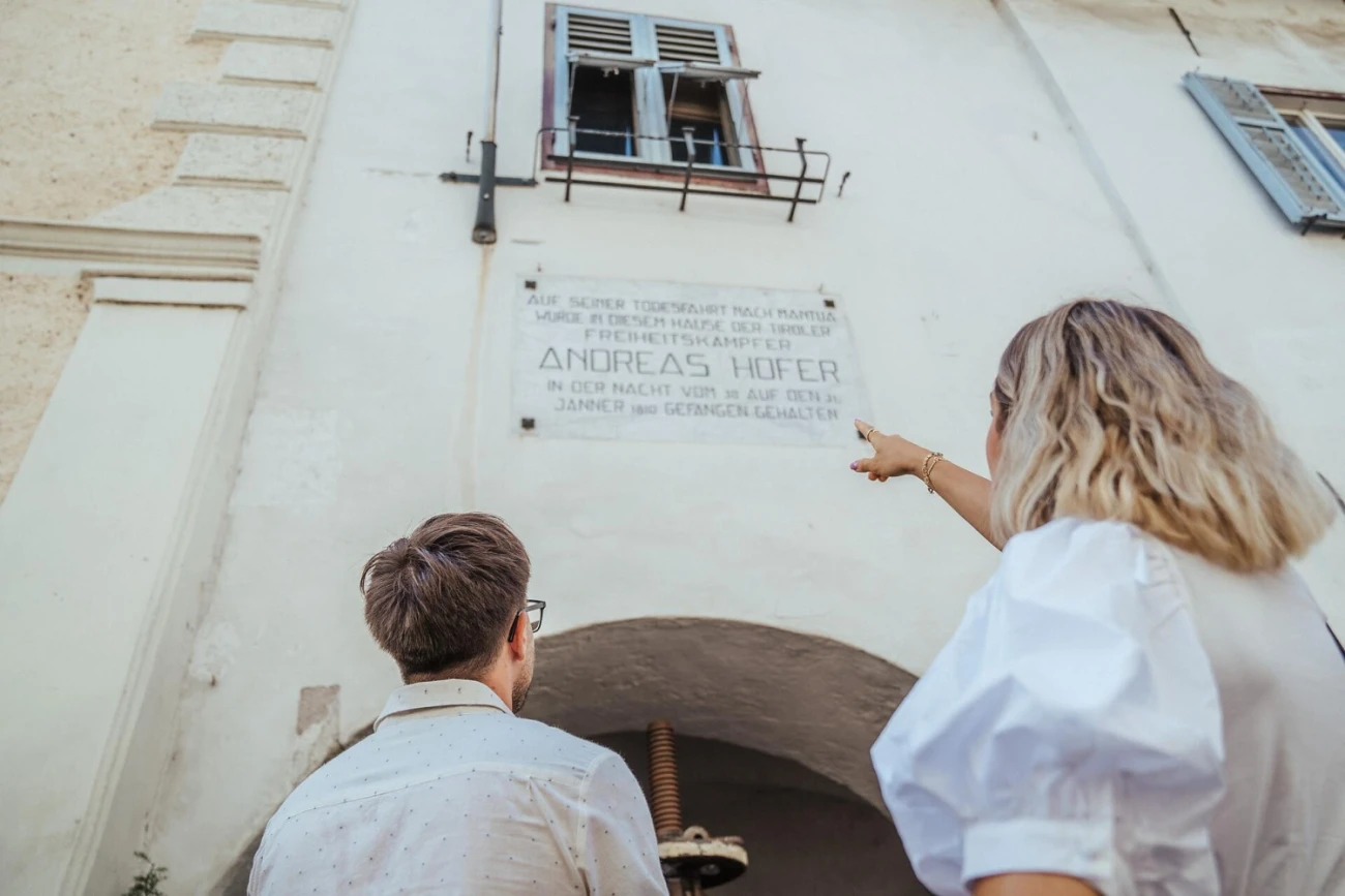 Via Andreas Hofer deve il suo nome al patriota altoatesino che nel 1809 guidò la sollevazione del Tirolo contro Napoleone; arrestato nel 1810, Andreas Hofer fu ospite delle prigioni di Egna nella notte tra il 30 e il 31 gennaio, prima di essere trasferito a Mantova per essere fucilato. Le antiche carceri giudiziarie si trovano al civico 28 della via; originariamente di proprietà dei signori di Enn e Caldiff rimasero in uso fino al 1830. Oggi l’edificio appartiene a un privato, ma al pianterreno sono state conservate due celle con volta a crociera e sulla facciata è stata posta una targa commemorativa in memoria dell’illustre ospite.
