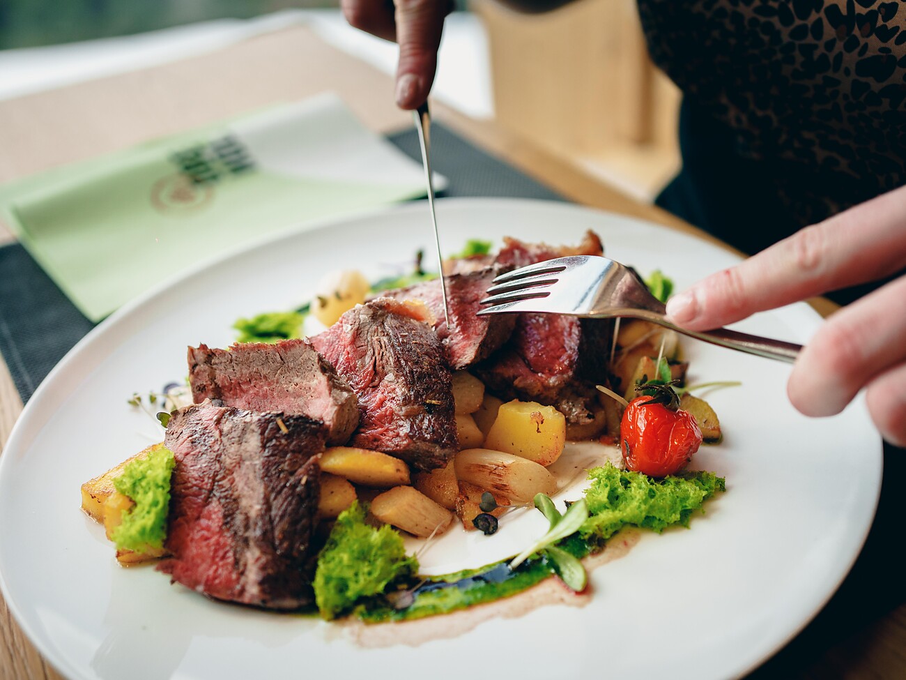 Immergiti nei momenti di gusto: I nostri rifugi e ristoranti a Carezza e Latemar creano capolavori culinari con carne bovina di alta qualità proveniente dalla Val d'Ega.
