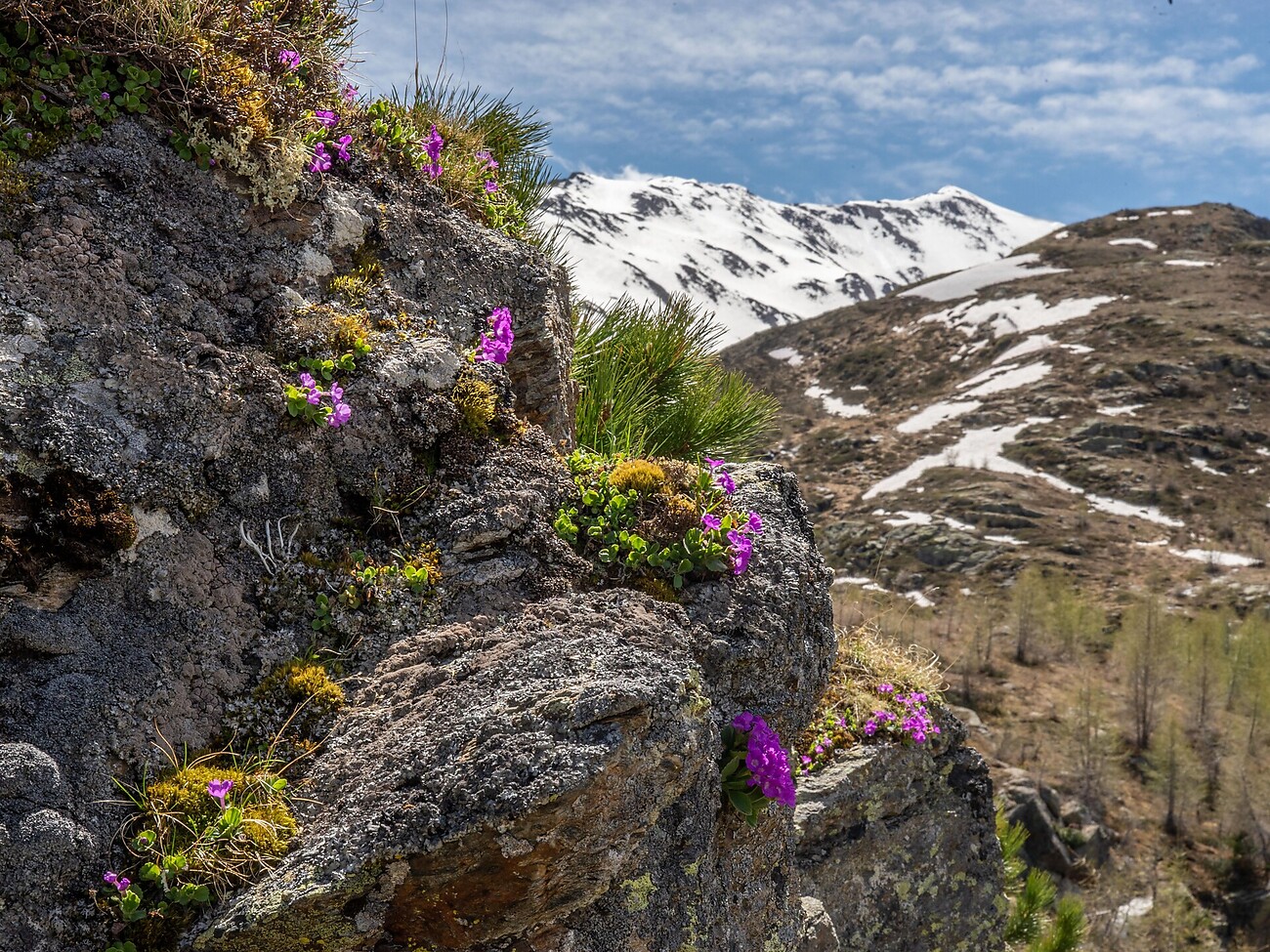 Durante il nostro percorso attraverso boschi alpini e prati fioriti, scopriamo i fiori alpini più belli. A mezzogiorno ci fermiamo sulla baita Kaserfeld.