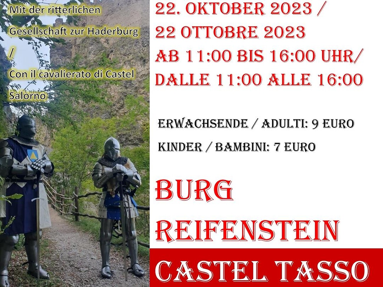 Costi - Adulti: 9,00 Euro / Bambini: 7,00 Euro