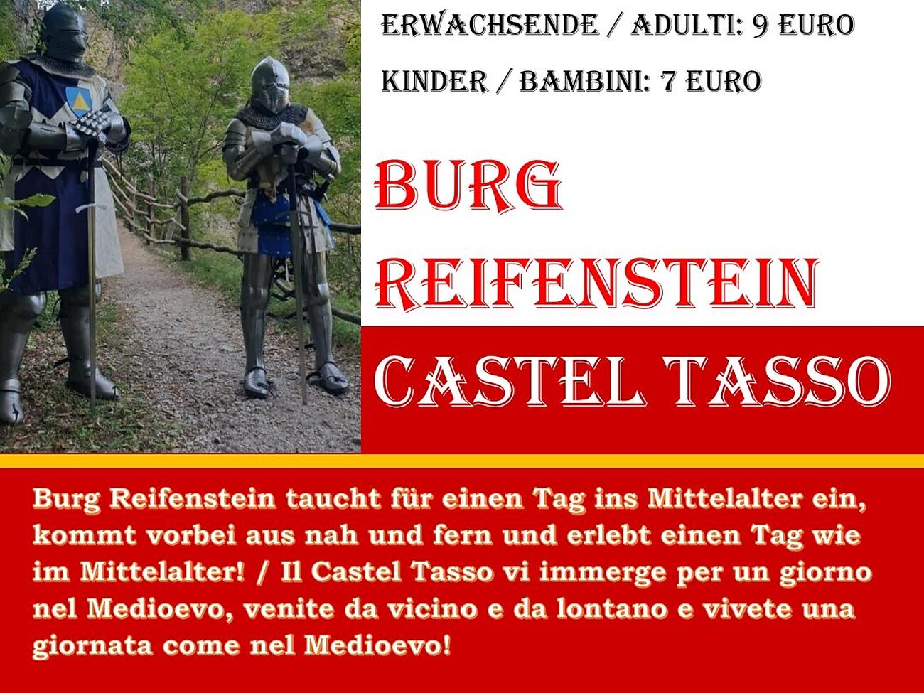 Il Castel Tasso vi immerge per un giorno nel Medioevo, venite da vicino e da lontano e vivete una giornata come nel Medioevo.