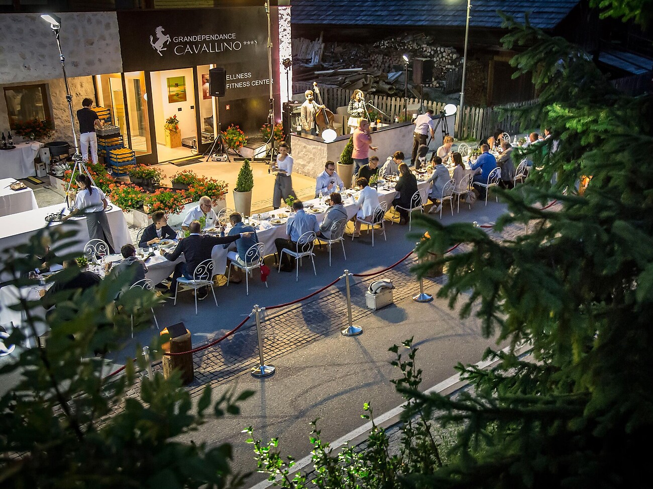 Il piazzale davanti alla chiesa si trasforma per l’occasione in un elegante ristorante sotto le stelle. Le strutture di Colfosco collaborano per creare un menu unico, pensato per celebrare il territorio e il piacere di stare insieme.