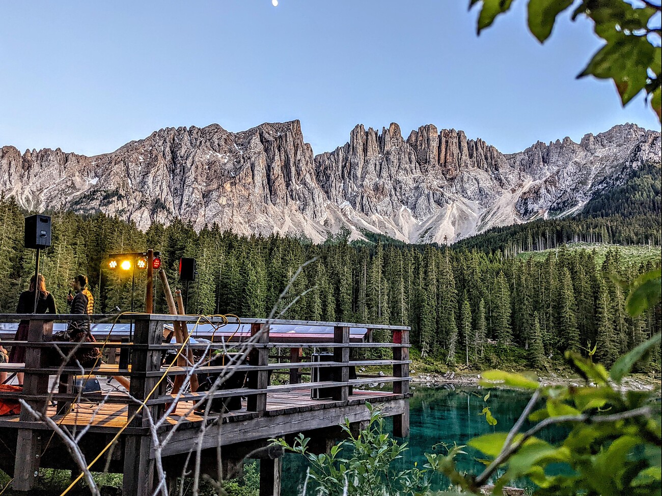 Un luogo per un concerto indimenticabile non potrebbe essere più bello. Sul palco del Lago di Carezza, con una vista unica sull'acqua verde-blu-turchese e sul Latemar.