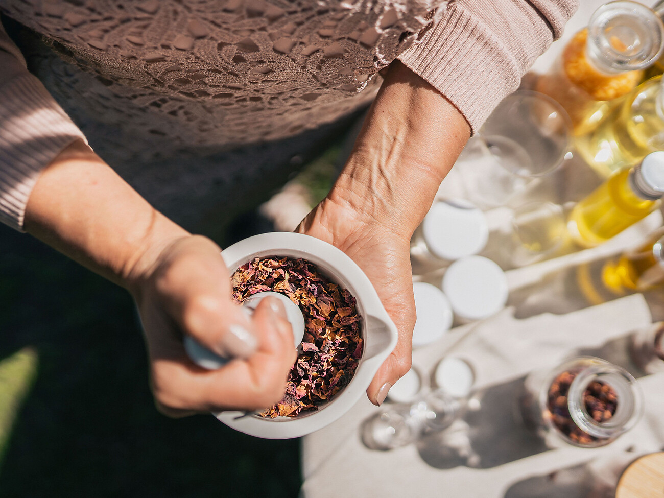 fermerai sotto un pergolato ombreggiato o in un’area coperta. Nel suo orto delle erbe Thea ti fa conoscere in modo più approfondito le diverse piante medicinali. Il pomeriggio si conclude con uno spuntino e una bevanda a base di erbe e prima di salutarti Thea ti lascerà delle dispense per mettere in pratica a casa quello che hai imparato.