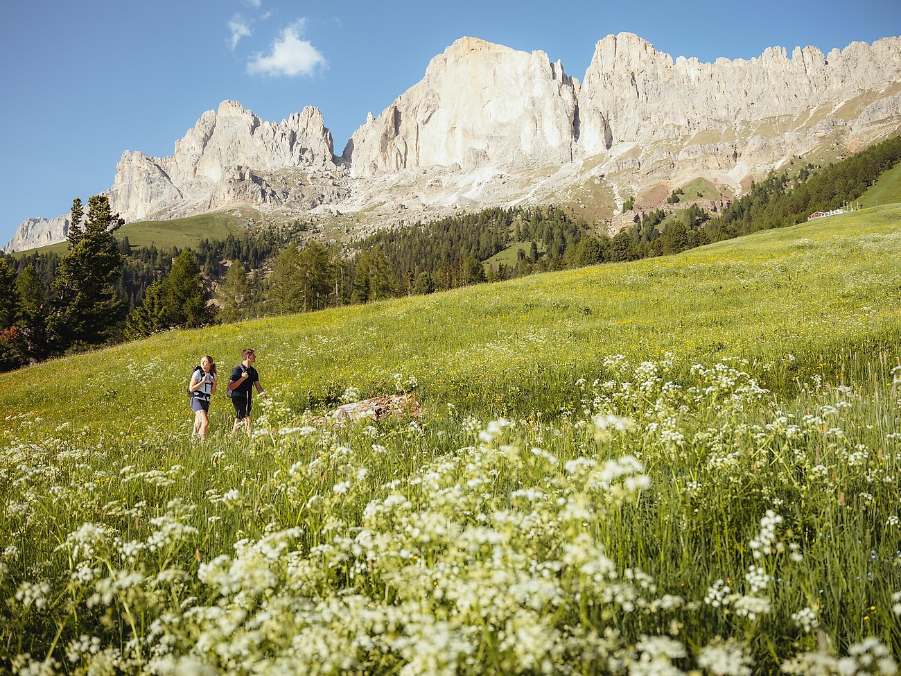 Salita da Nova Levante con la cabinovia fino alla malga Frommeralm. Da lì, camminiamo fino alla baita Messnerjoch. La nostra escursione panoramica nell'area del Catinaccio continua fino alla baita Haniger Schwaige, dove le Torri del Vajolet sono a portata di mano. Attraverso il sentiero Valle Nigra si ritorna a Nova Levante al punto di partenza.