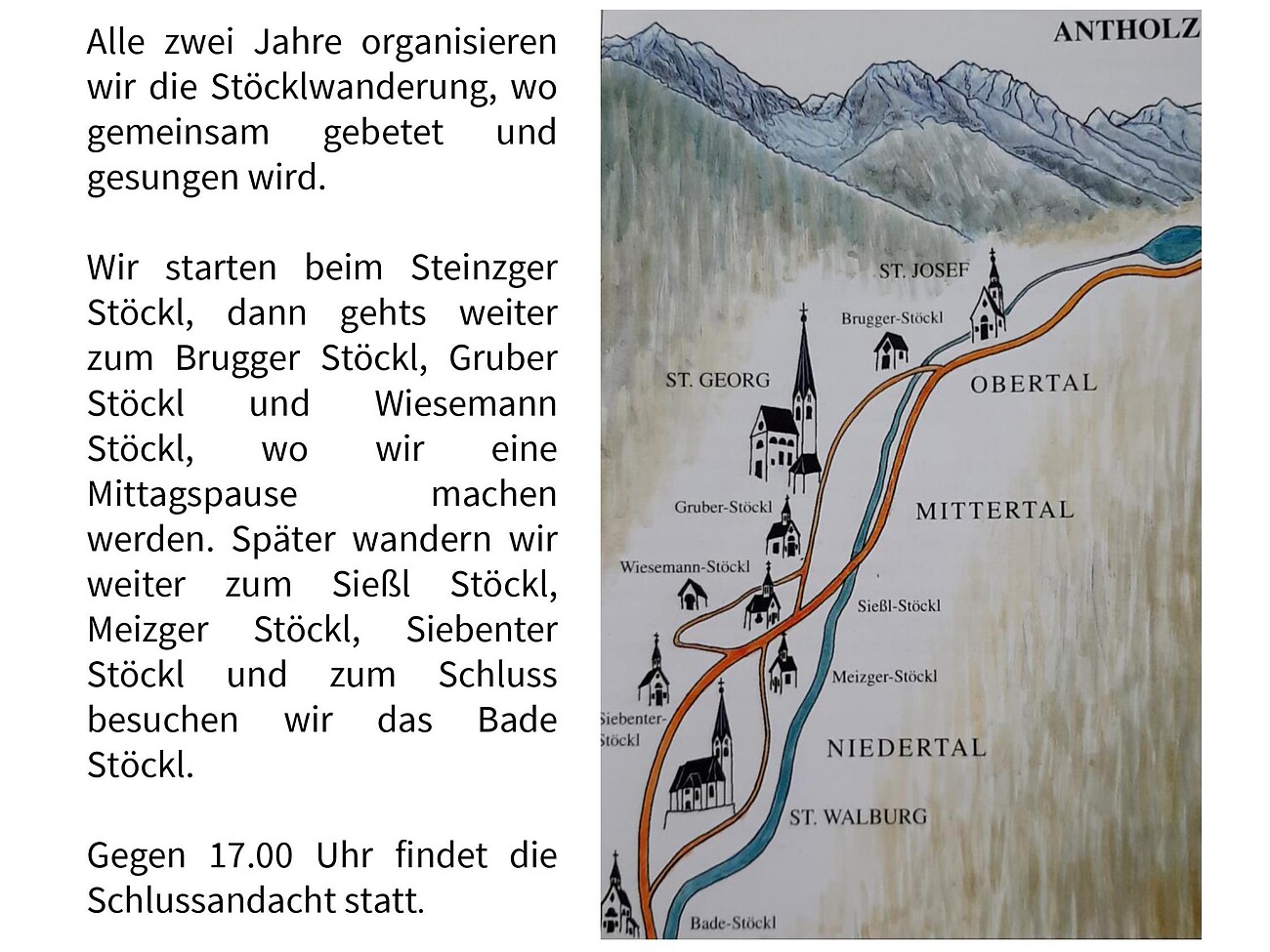 Successivamente, l'escursione prosegue verso il "Sießl Stöckl", il "Meizger Stöckl", il "Siebenter Stöckl" e infine si arriva al "Bade Stöckl" ai Bagni di Salomone. Lì si terrà una funzione finale intorno alle ore 17.00.