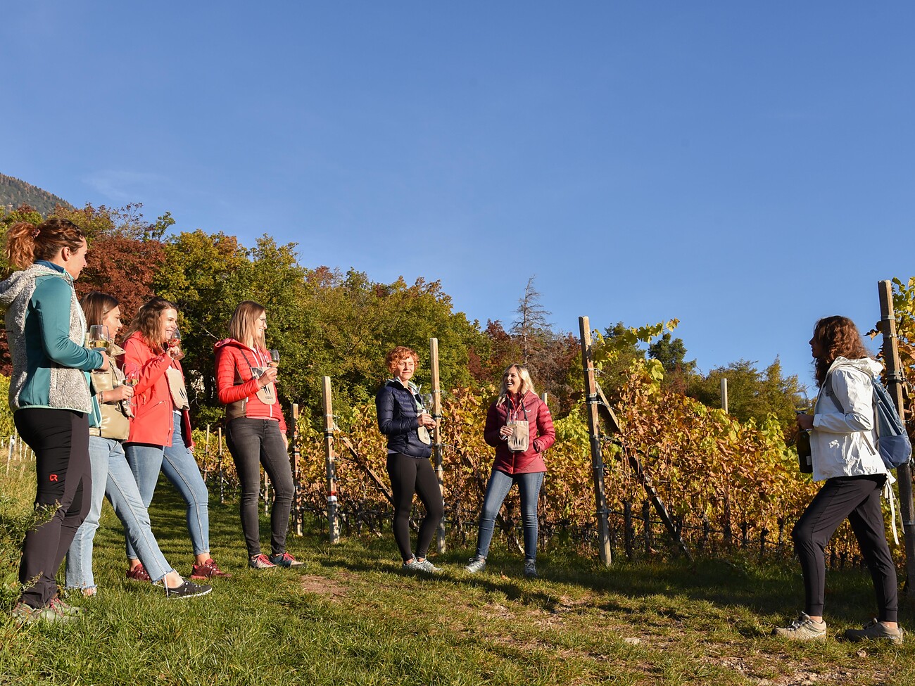 In un tour di una giornata intera, camminerete accompagnati da una delle nostre guide professionali attraverso i nostri vigneti da 900 m a 220 m. Degusterete 12 vini della nostra linea TERROIR nel loro rispettivo luogo d'origine. La tipica merenda altoatesina del mattino, il cosiddetto "Holbmittog", e il pranzo di 3 portate in uno dei ristoranti di Cortaccia, vi permetteranno di gustare specialità culinarie.