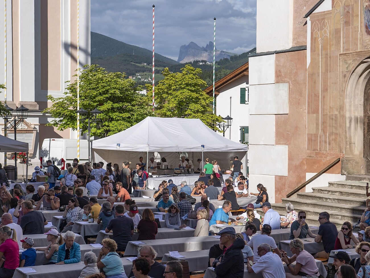 Alla festa annuale dei canederli in Piazza a Castelrotto potrai scoprire tutta la varietà dei canederli altoatesini: gnocchi al formaggio, canederli agli spinaci, canederli allo speck – e per chi ama i dolci, non possono mancare i canederli alle albicocche e fragole.