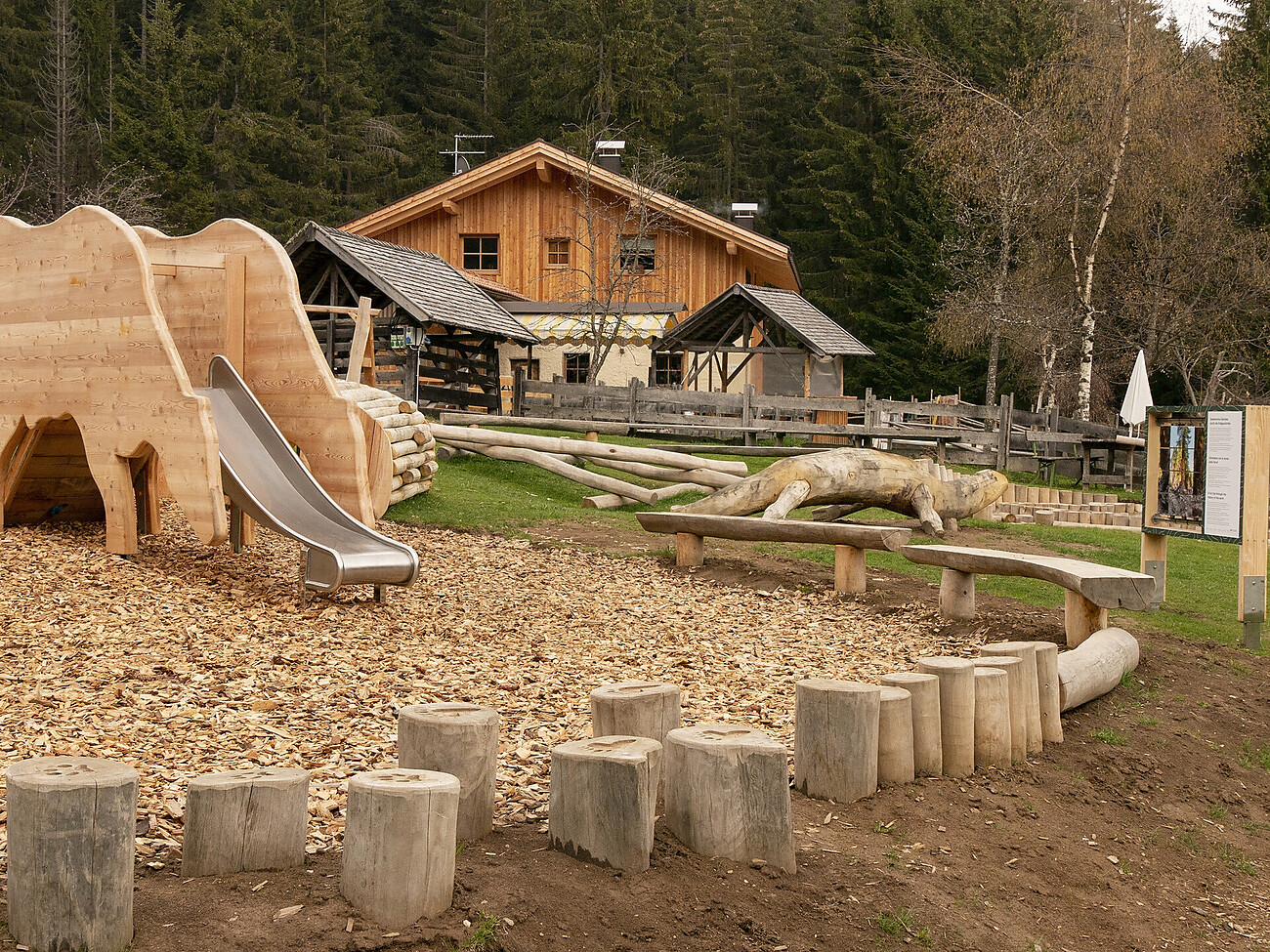 Il sentiero dei sauri sopra il Centro Visitatori GEOPARC Bletterbach ad Aldino porta in un viaggio nel Permiano, 260 milioni di anni fa, quando si formarono le rocce e i fossili del Bletterbach e delle Dolomiti.Il percorso circolare è composto da nove stazioni che permettono uno sguardo particolare gola del Bletterbach e delle Dolomiti.Famiglie con bambini, anziani e persone con disabilità e patiti delle camminate, quali che siano le condizioni del tempo, scoprono, tra l’altro, le orme dei sauri e i loro autori, confrontano le piante dell’epoca con i loro parenti attuali e si immergono nel mondo delle più piccole orme fossili sul sentiero istruttivo e divertente.