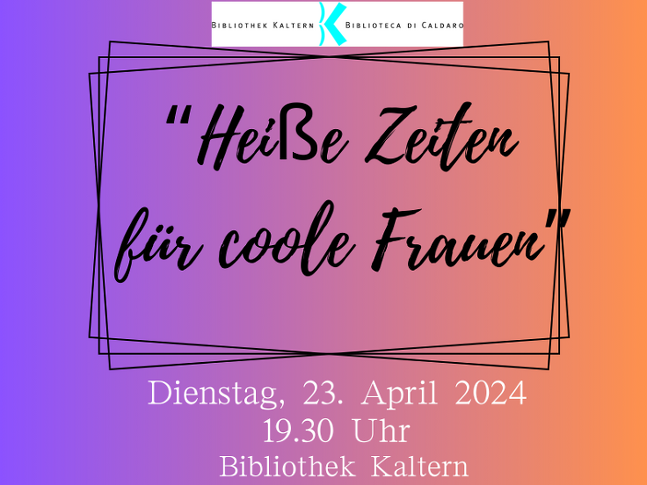 Die Bibliothek Kaltern lädt ein zum locker-lustigen Vortrag "Heiße Zeiten für coole Frauen" über Wechseljahre, Hormone und aufregende Zeiten mit der Apothekerin Sandra Rohregger ein.