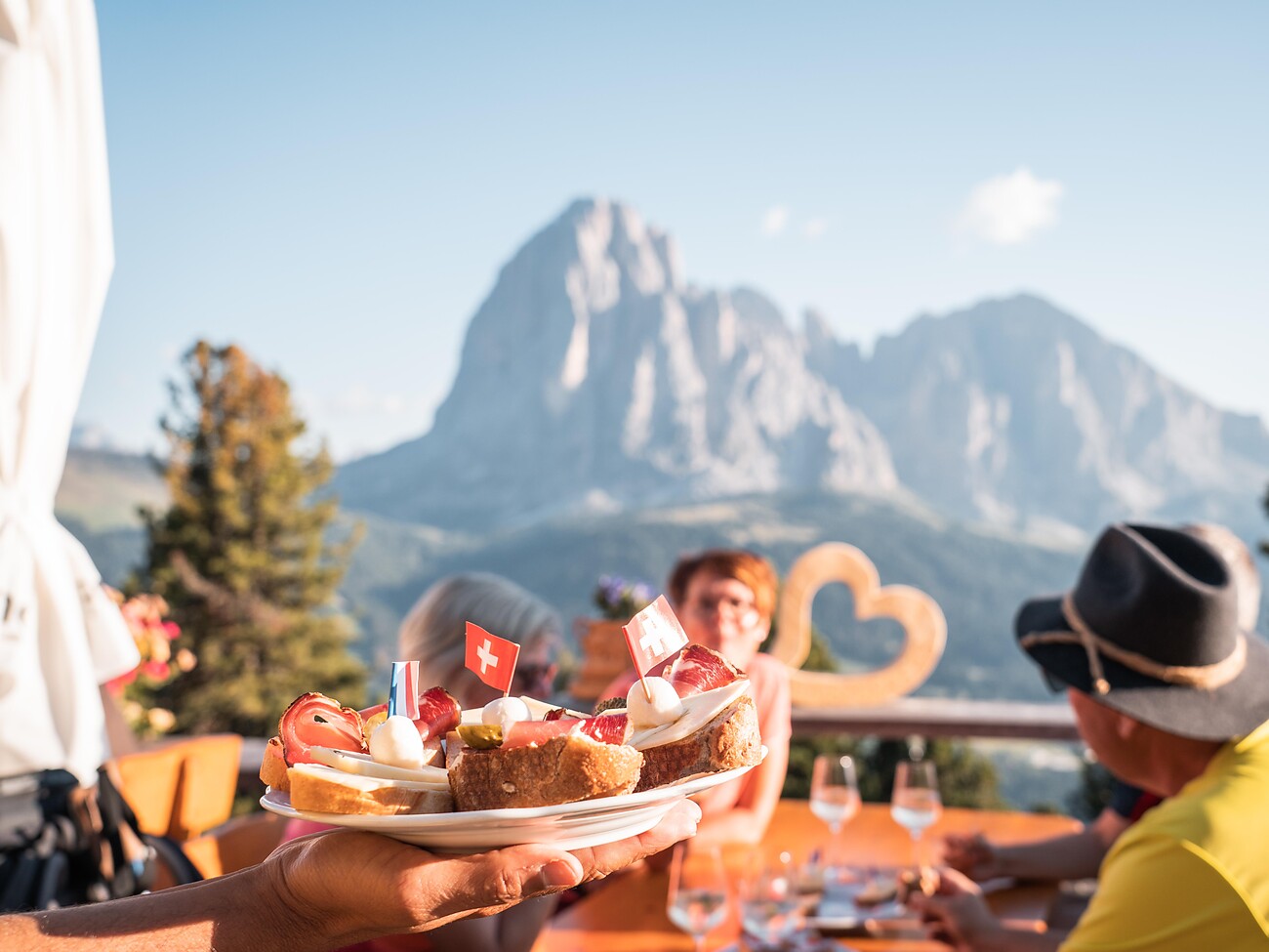 Partendo nel tardo pomeriggio dal parcheggio Cristauta, camminerete attraverso magici boschi fino ad arrivare al Sëurasas. La luce del sole al tramonto avvolgerà il paesaggio in un’atmosfera particolare. Su questo terrazzo panoramico verrà servito un gustoso aperitivo con spuntino e dessert presso una caratteristica baita di montagna, per poi ammirare sullo spuntone roccioso gli ultimi raggi del sole, la straordinaria colorazione del cielo e il rosso infiammante delle montagne circostanti.
