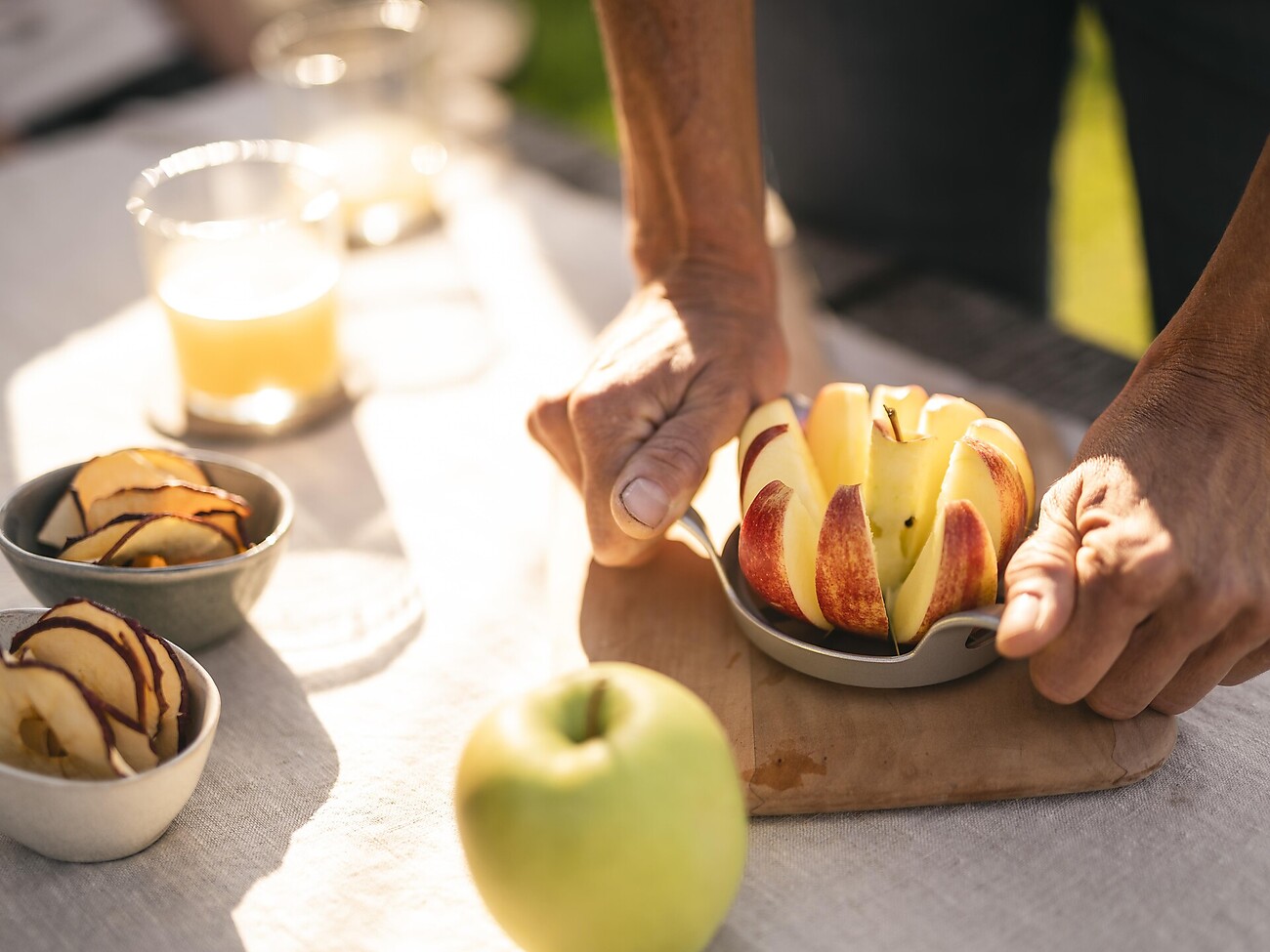 Ami le mele, ma non ti sei mai chiesto chi si cela dietro queste succose bombe vitaminiche? Allora un tour guidato attraverso i meleti è proprio ciò che fa per te. Il nostro frutticoltore ti accompagna tra i frutteti e ti racconta tante curiosità su questo frutto così vario. In seguito, insieme alla contadina Gitti e al contadino Sepp, preparerete voi stessi i tradizionali Apfelkiachl, li friggerete e li degusterete.