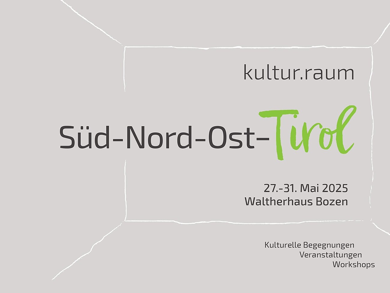 Dal 27 al 31 maggio 2025, il kultur.raum Süd-Nord-Ost-Tirol si terrà presso il Waltherhaus di Bolzano. Questo evento sarà un punto di incontro per discussioni, workshop e una varietà di eventi, organizzati in collaborazione con numerosi partner.