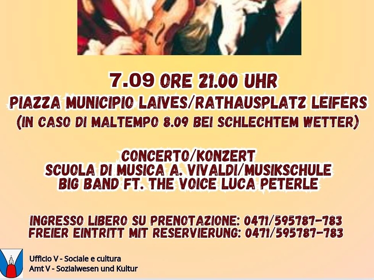 Vivaldi incontra Sinatra. In Piazza Municipio, concerto della scuola di musica A. Vivaldi Big Band ft. the voice Luca Peterle. Ingresso libero.