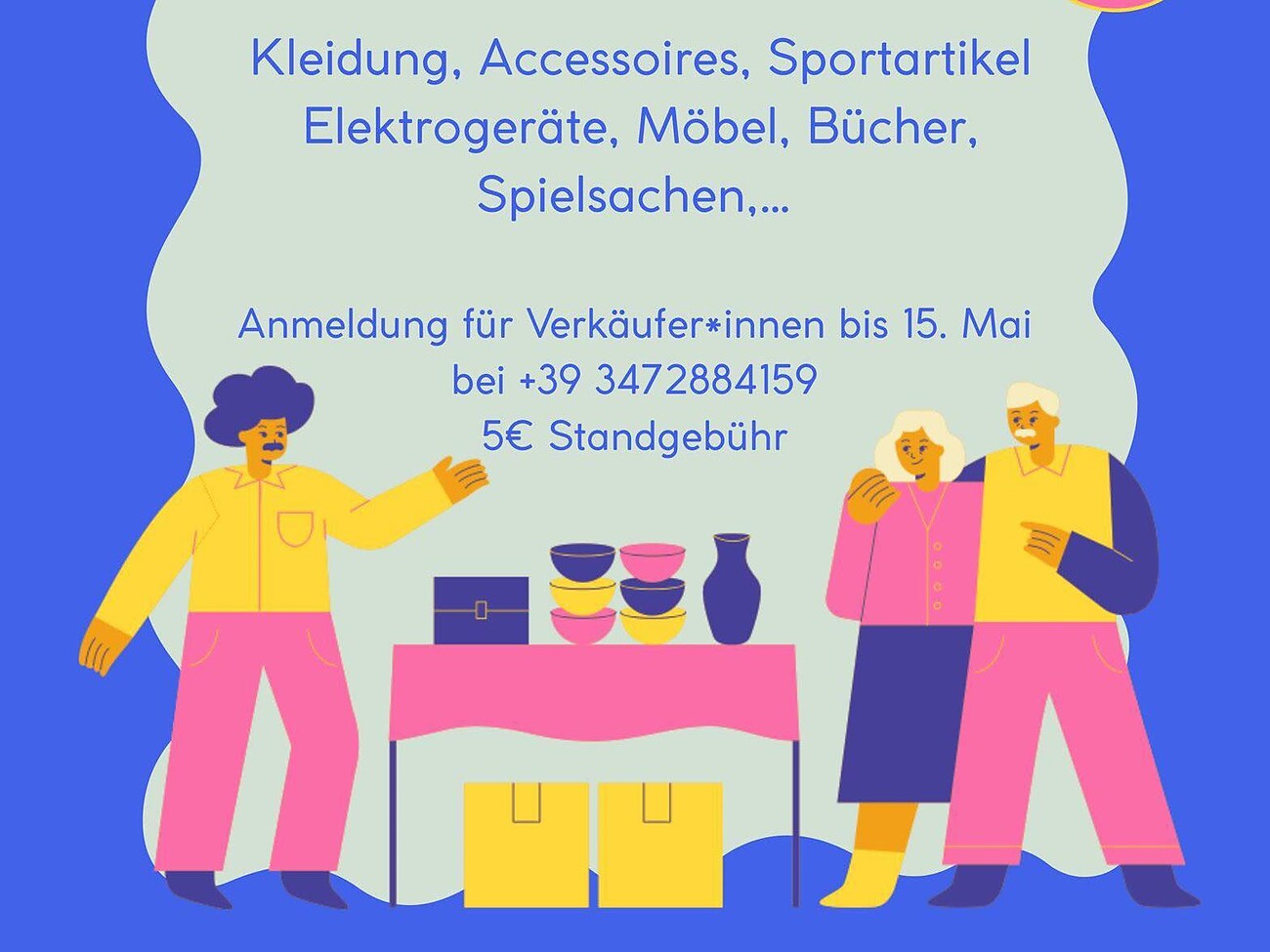 Chi desidera vendere può iscriversi entro il 15 maggio al numero +39 347 288 4159. Il costo per il banco è di 5 euro.