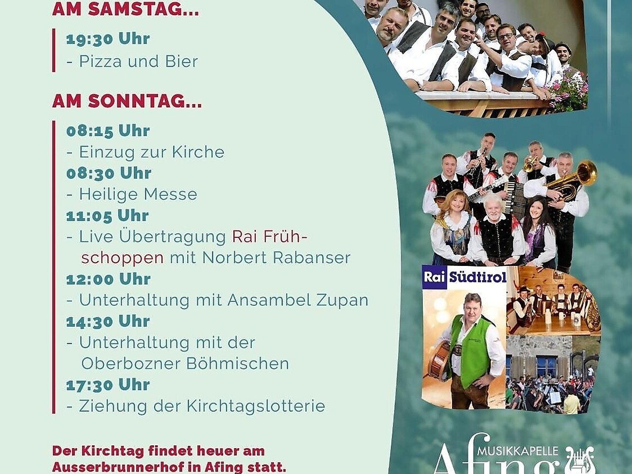 La banda musicale di Avigna vi invita al tradizionale "Kirchtag in Afing" l'19 e 20 luglio 2025!