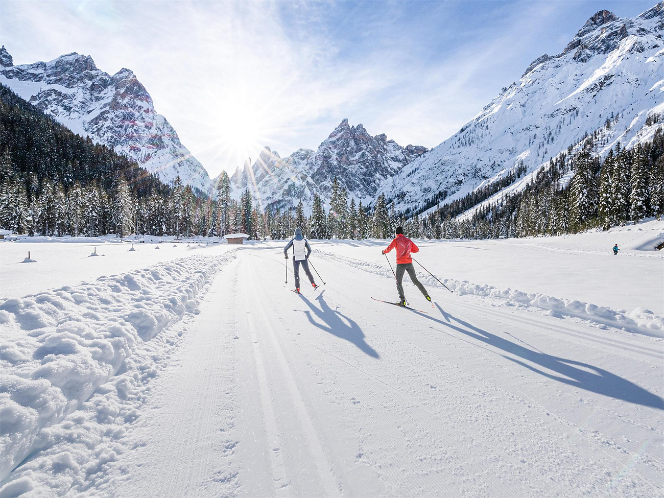 Nel pittoresc paese Sesto, parte del più grande carosello di sci di fondo d'Europa, il Dolomiti NordicSki, entusiasma soprattutto l'idilliaco e autentico paesaggio invernale. Chi lo desidera può sciare per chilometri e chilometri a passo classico o pattinato e ammirare i campi nella loro soffice veste invernale e gli alberi con i tipici berretti di neve sulla chioma. In caso di tour di una giornata ovviamente l'idea di fermarsi a mangiare in una delle accoglienti trattorie che si trovano proprio vicino alla pista è molto allettante. Oltre alle specialità pusteresi vengono anche offerte terrazze soleggiate dove riposarsi e ampie viste panoramiche.