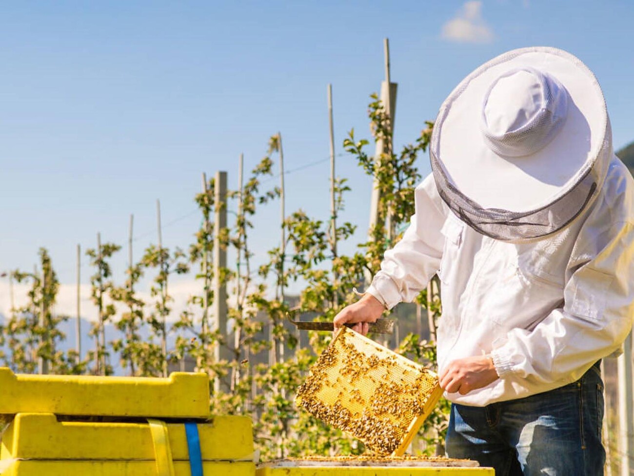 Visita guidata con l'apicoltore Bienenmichl ogni mercoledì alle ore 16 presso la Apicoltura Apis Aurum a Marlengo. Insieme all'apicoltore Michael, conoscerete i momenti emozionanti e interessanti di un apicoltore con le sue api. Aprite un alveare con lui e scattate un selfie con la regina! Siate coraggiosi e sgranocchiate il miele fresco dai favi.