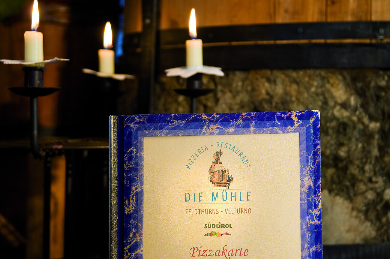 In un ambiente naturale e accogliente diamo il benvenuto ai nostri ospiti nella pizzeria della casa: "Die Mühle". Il legno delle pareti e dei mobili tradizionali crea nel locale una calda atmosfera che invita a restare e ad appagare i sensi. Qui serviamo numerose e saporite variazioni del piatto tradizionale italiano. La pizza fatta in casa e cotta nel forno a legna è preparata esclusivamente con i migliori ingredienti freschi e assaporarla diventa indubbiamente un'esperienza gustativa unica. Venite a trovarci con gli amici e la famiglia e provate le deliziose pizze del nostro ricco assortimento.