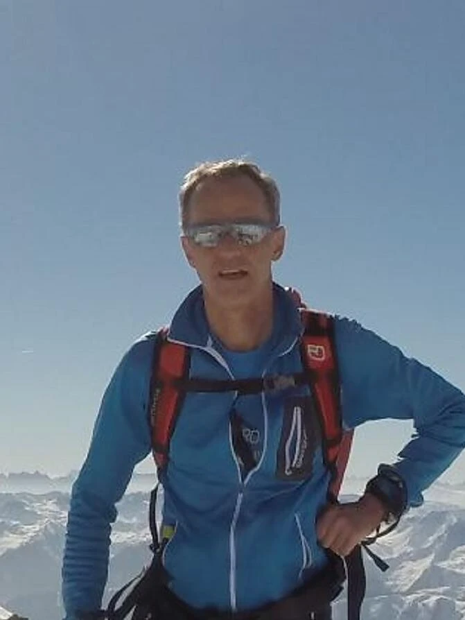 Attività preferite: arrampicata nelle Dolomiti (e non solo), con una preferenza per i ghiacciai dell'Alto Adige e delle Alpi Occidentali. In inverno, è appassionato di scialpinismo.