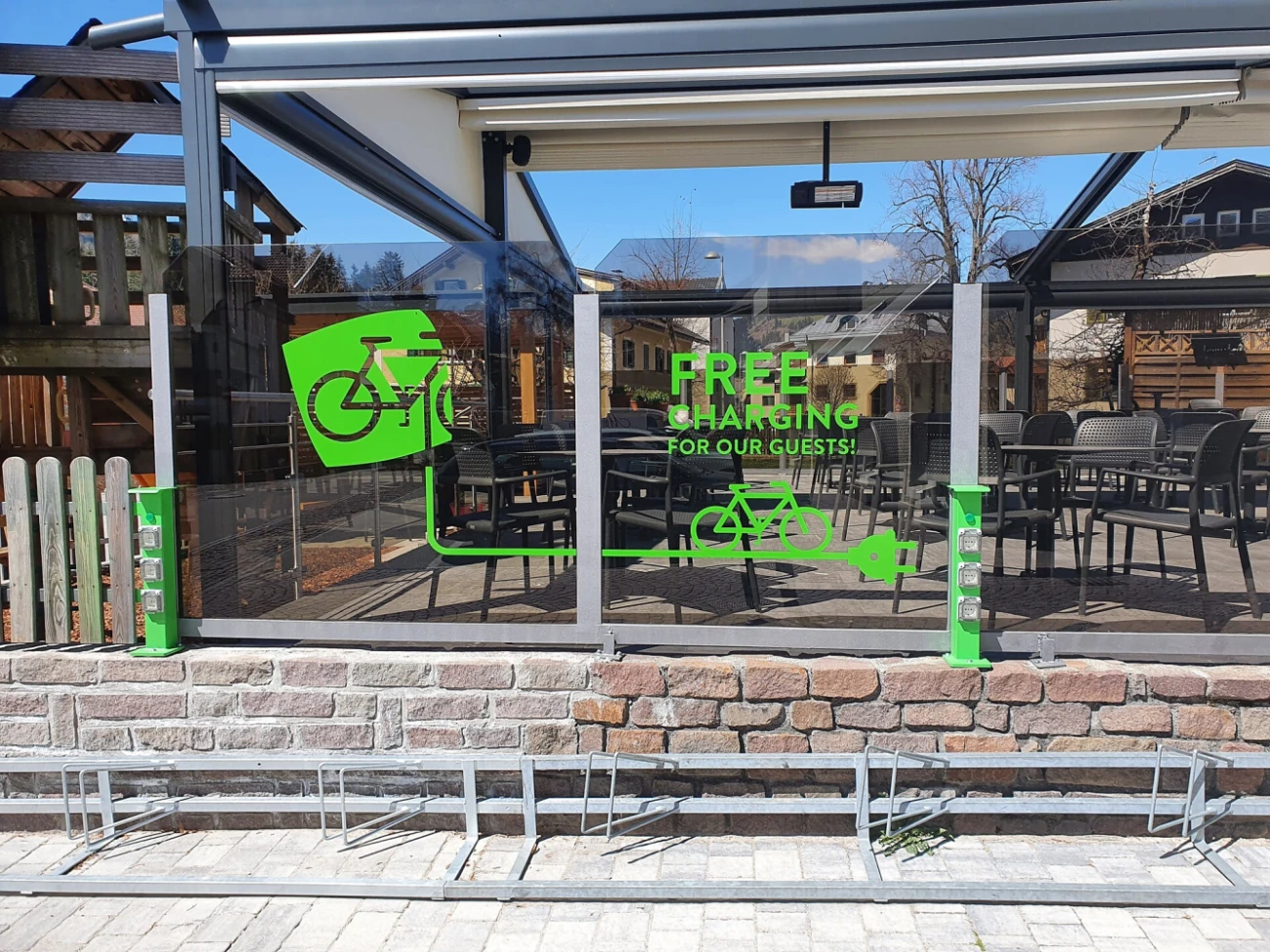 Le batterie della vostra bicicletta elettrica possono essere caricate presso il Bar Dorfcafe a Monguelfo (centro del paese/vicino alla Chiesa Parrocchiale). La ricarica è gratis. Il consumo è naturalmente desiderato. Il Bike-Free-Charger offre a 15 biciclette allo stesso tempo una presa di ricarica con un supporto per biciclette chiudibile a chiave (cavo di ricarica e lucchetto propri necessari). Il nuovo parcheggio per le biciclette è facilmente visibile dalla terrazza.
