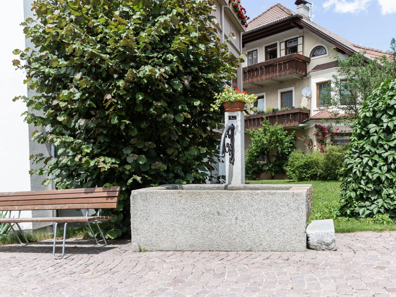 Questa fontana d'acqua potabile si trova nel centro a Monguelfo, nelle vicinanze della Banca Populare nella strada Vicolo Parrocchiale.