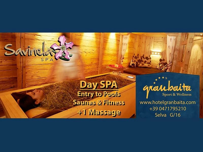 L’oasi wellness del Granbaita Vi farà conoscere una nuova dimensione del benessere e del relax. Le sale in cui i nostri massaggiatori e le nostre terepiste che si distinguono per la loro eccelsa professionalità, prendono il nome dai luoghi e dai fiori della nostra amata Vallelunga. I trattamenti offerti garantiscono un’efficacia duratura ed un senso di leggerezza e piacere. La sorprendente e nuova sauna “Saslong” è situata nell’ampia oasi wellness, con impareggiabile vista sul Sassolungo: ecco perché questa sauna porta il nome ladino di questa cima. Due volte al giorno qui hanno luogo profumate ventilazioni a tema. Per le nostre care ospiti abbiamo appositamente preparato una Lady-Bio sauna, mentre per le famiglie il Granbaita ha ideato una Family - Sauna.