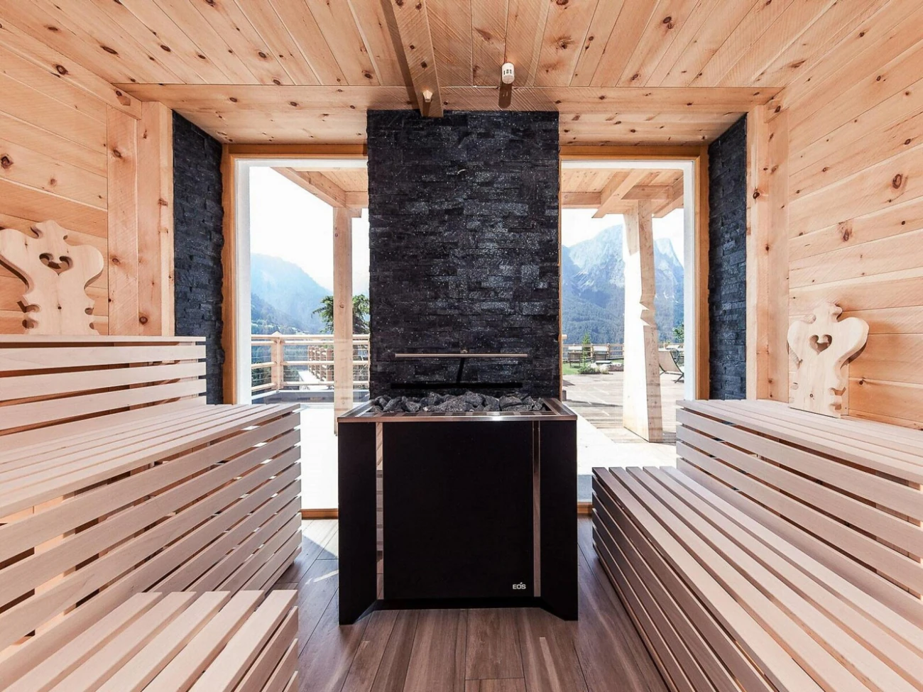 Avvertite come ogni tensione abbandona il vostro corpo, avvolti nel benefico calore del nostro mondo delle saune con sauna finlandese, biosauna, bagno turco e sauna panoramica in legno di cirmolo.